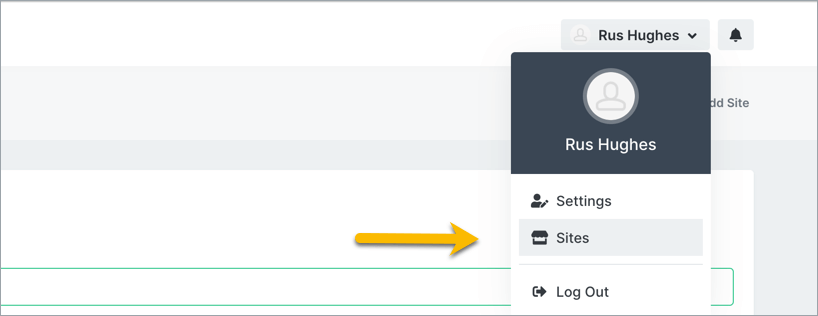Click your profile in the upper right corner, then click on Sites.