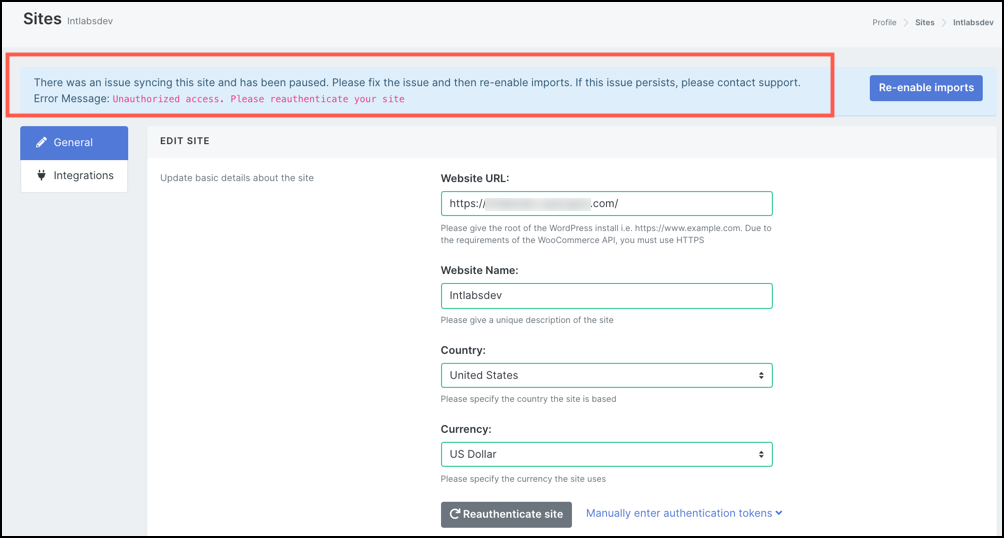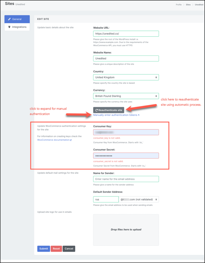 If you’re sure you typed in the correct details, then you may click the Reauthenticate site button.