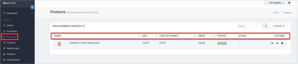 You can edit the product’s visibility, basic details, or delete it from Blue Odin.